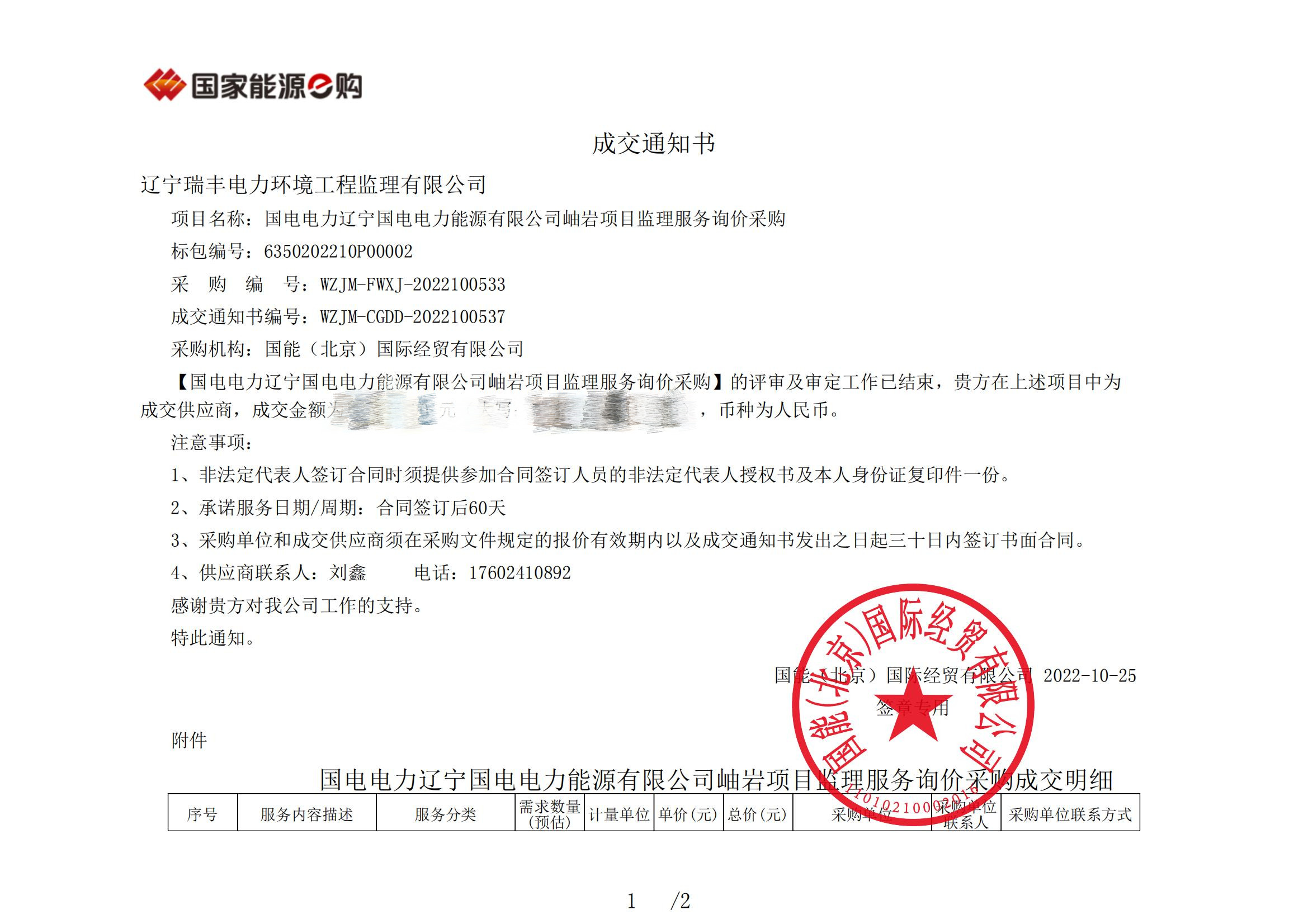 中標(biāo)喜訊-國(guó)電電力遼寧國(guó)電電力能源有限公司岫巖項(xiàng)目監(jiān)理......